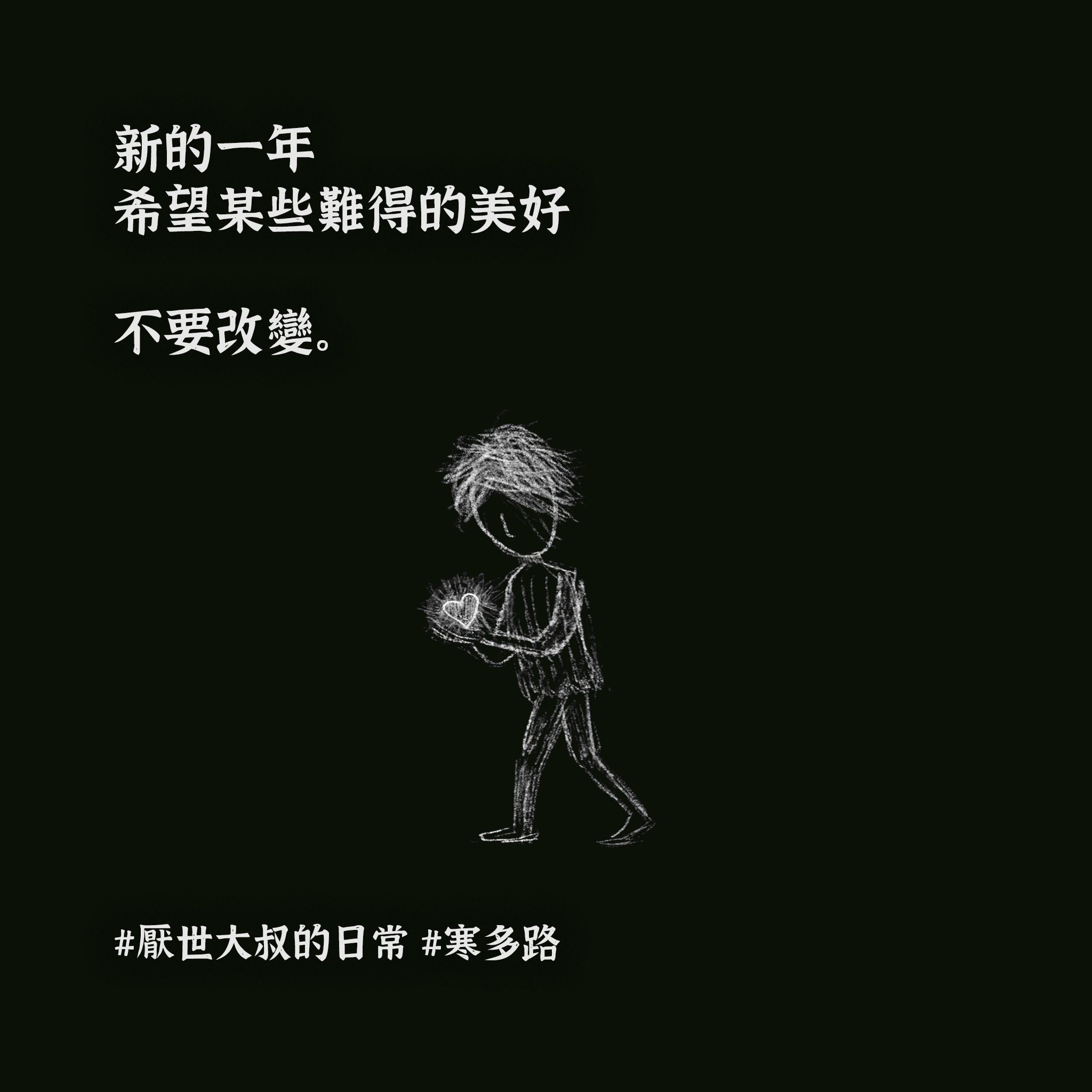 今年也是这样就要过去了。下午看到去年年底画的这张图,突然觉得这几天还是一样的感受:唯一真实的,还是能捧在手心的这些小幸福。所以决定再贴一次。预祝大家新年快乐。#厭世大叔的日常 #寒多路