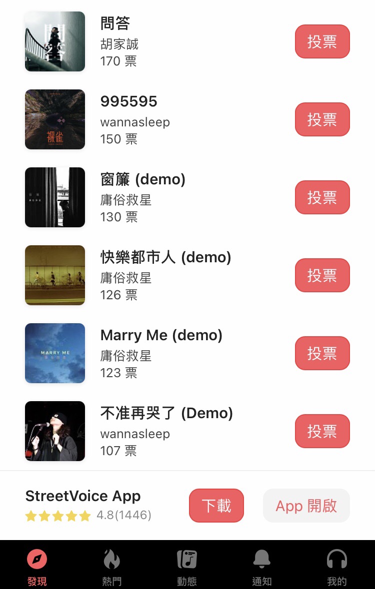 谢谢昨天帮忙投票的大家给你们看看最新进度今天投完的来这里签到吧吗?https://streetvoice.com/opportunities/915/votes/most_votes/?target_user=2639694