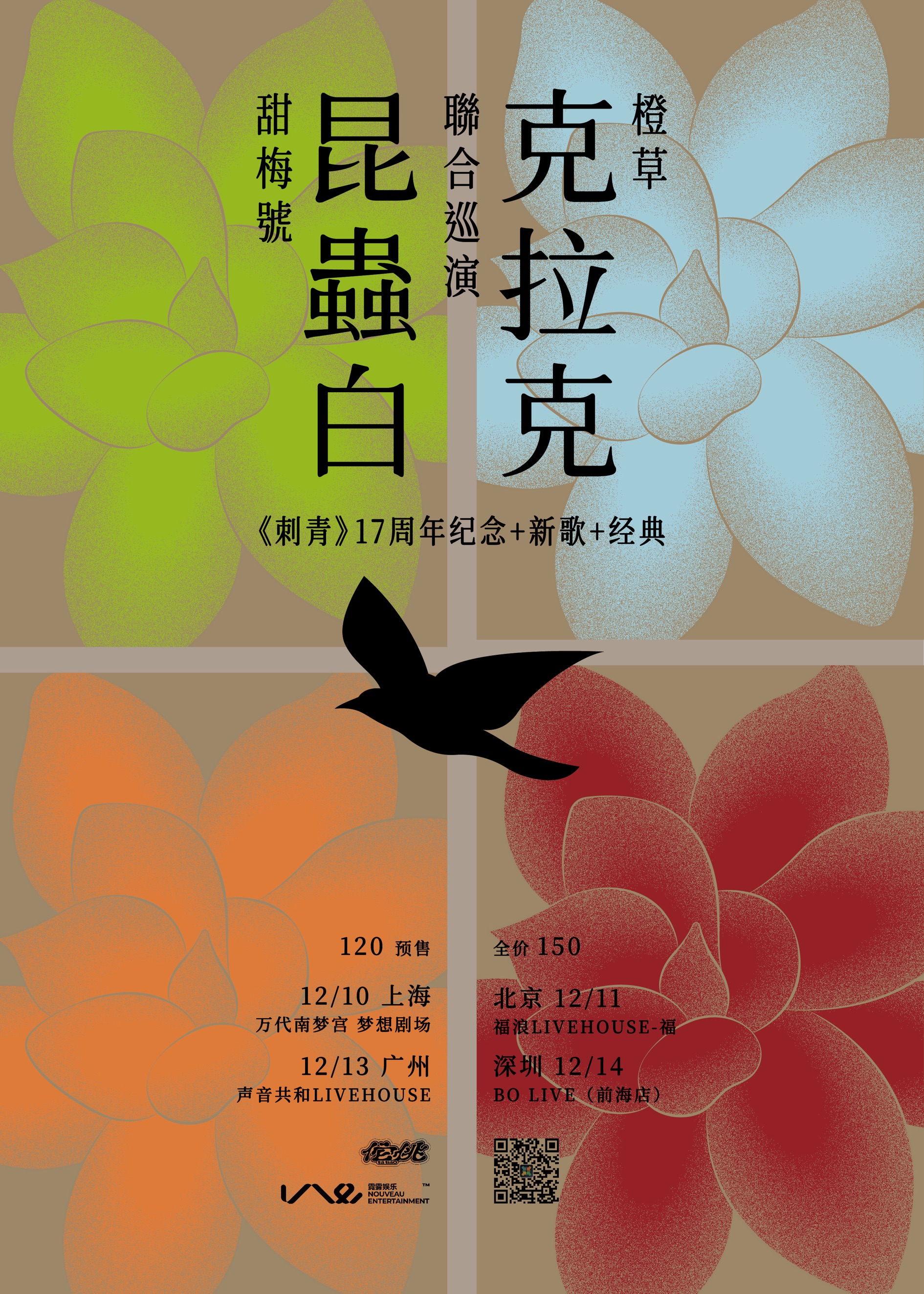 【(甜梅号)昆虫白 X (橙草)克拉克 2024联合巡演】《刺青》17周年纪念 + 经典重现 + 新歌今晚开跑,巡演站次:12月10日(二)上海 | 万代南梦宫梦想剧场12月11日(三)北京 | 福浪LIVEHOUSE-福12月13日(五)广州 | 声音共和Live12月14日(六)深圳 | 深圳BOLIVE(前海)