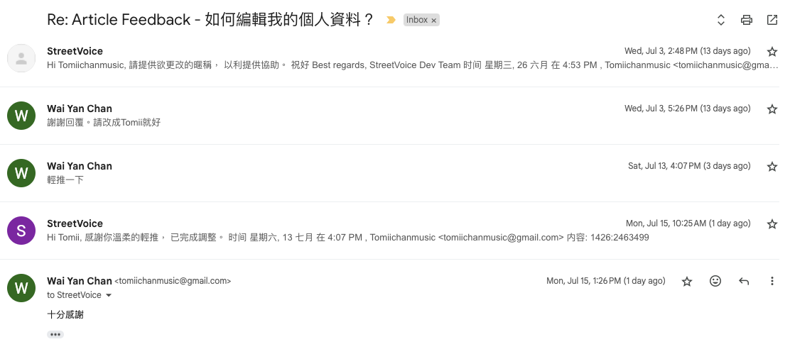 我与Streetvoice客服的对话