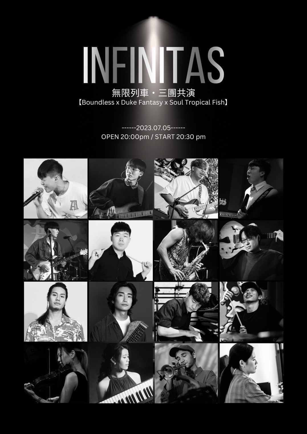 07/05(三)[Infinitas|无限列车 三团共演]无定义BoundlessX灵魂热带鱼X范特西公爵地点|Revolver入场|20:00 / 开演 20:30门票|400(+Drink)